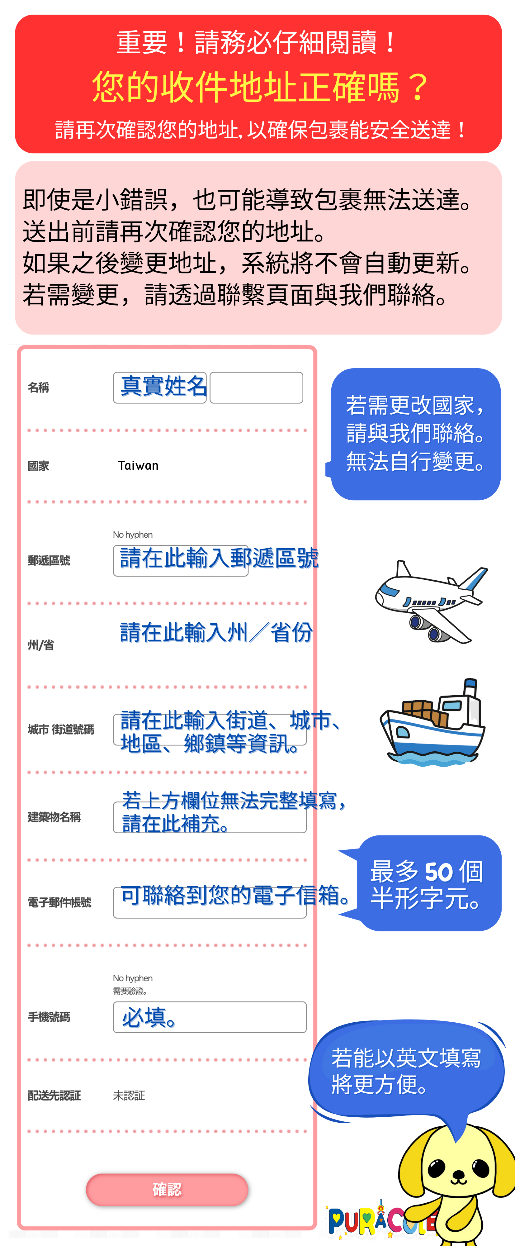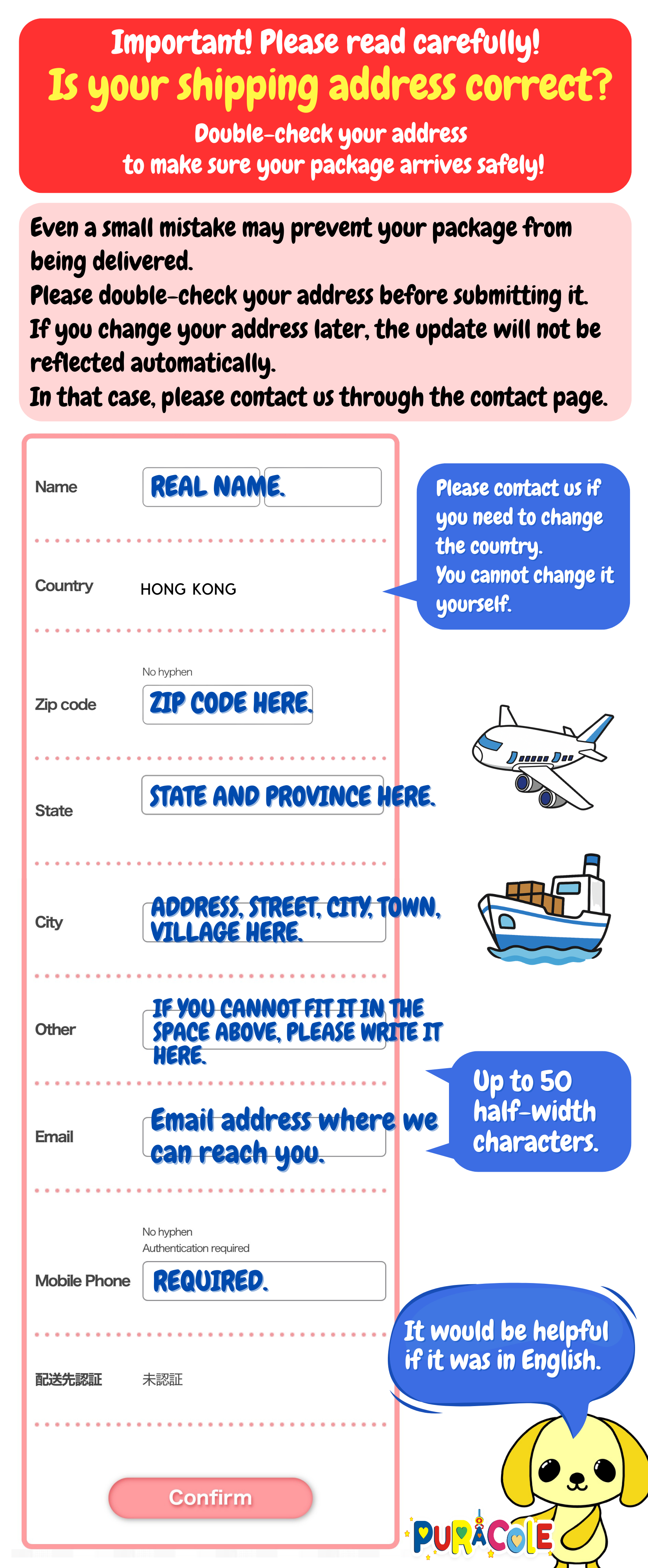 To help prevent delivery issues, we have prepared a guide on how to correctly enter your shipping address.